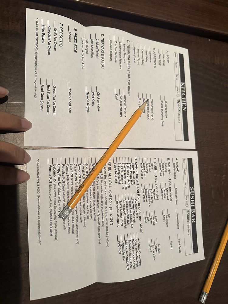 Tuna options include sushi or sashimi-style, with one or two pieces respectively.