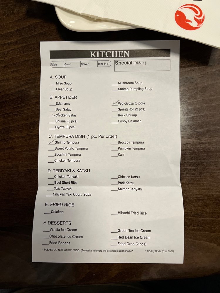 Tempura-battered ice cream, choice of vanilla, chocolate, green tea, or red bean.