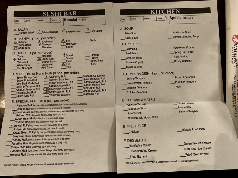 Watawa Sushi & Lounge in Bethpage, NY stands out as a top choice for all-you-can-eat sushi, offering a diverse menu with options to satisfy every palate. Customers rave about the delicious sexy roll and the excellent service that ensures a fast and attentive dining experience. With a wide variety of sushi, sashimi, and appetizers available, paired with reasonable prices, Watawa is a go-to spot for sushi enthusiasts. The restaurant's clean and inviting ambiance, along with options for private dining and outdoor seating, make it ideal for gatherings of all sizes. Whether dining in or ordering delivery, Watawa impresses with its quality food and top-notch service, making it a must-visit destination for sushi lovers.